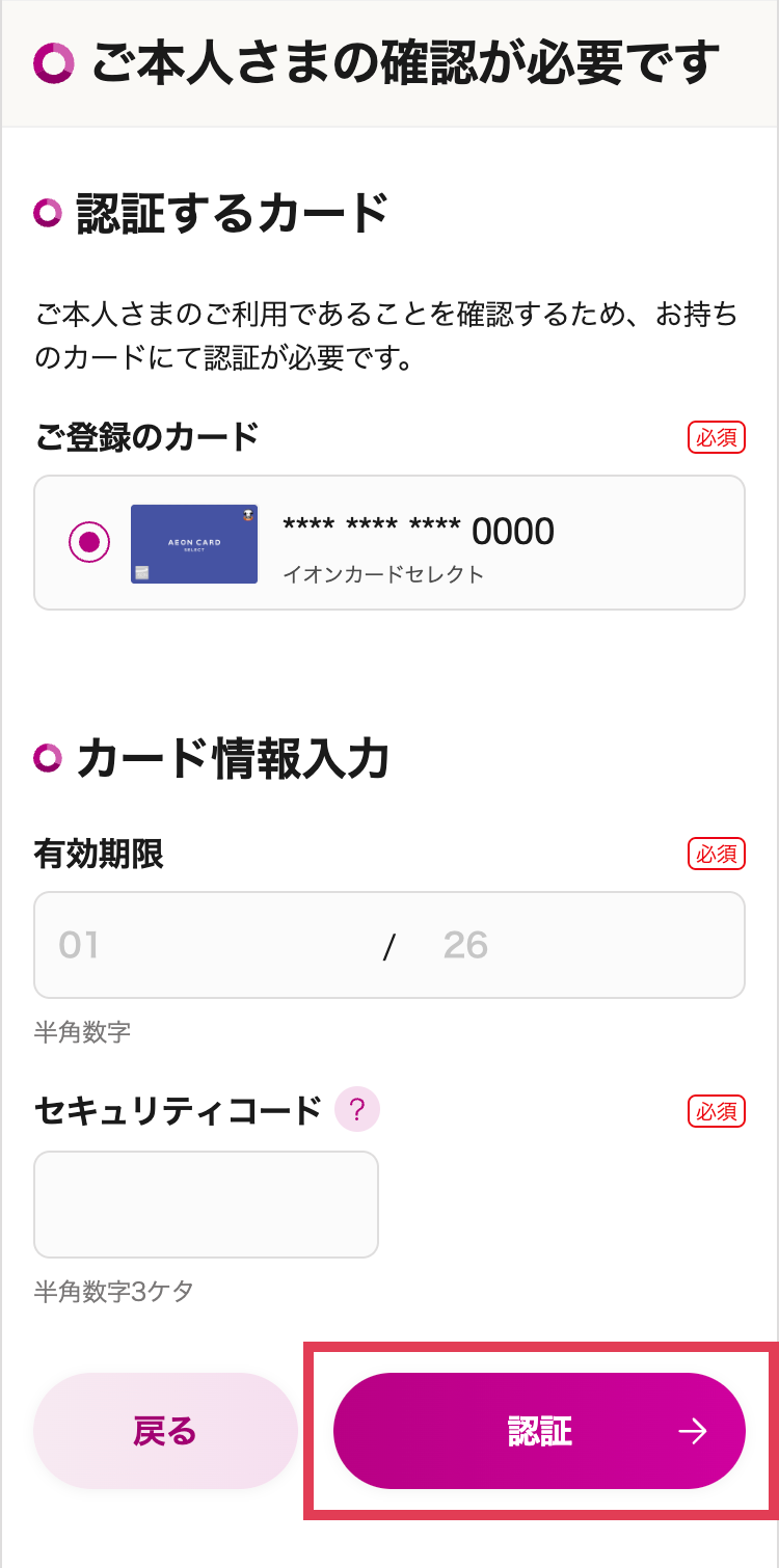 - ご変更手続きはご本人さま確認のため、お持ちのカード情報による認証が必要です。