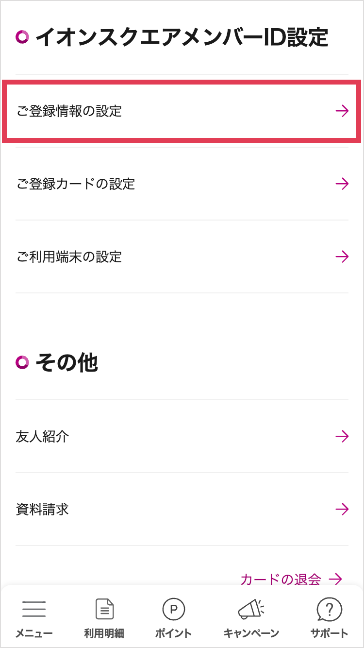 3.イオンスクエアメンバーID設定の「ご登録情報の設定」を選択