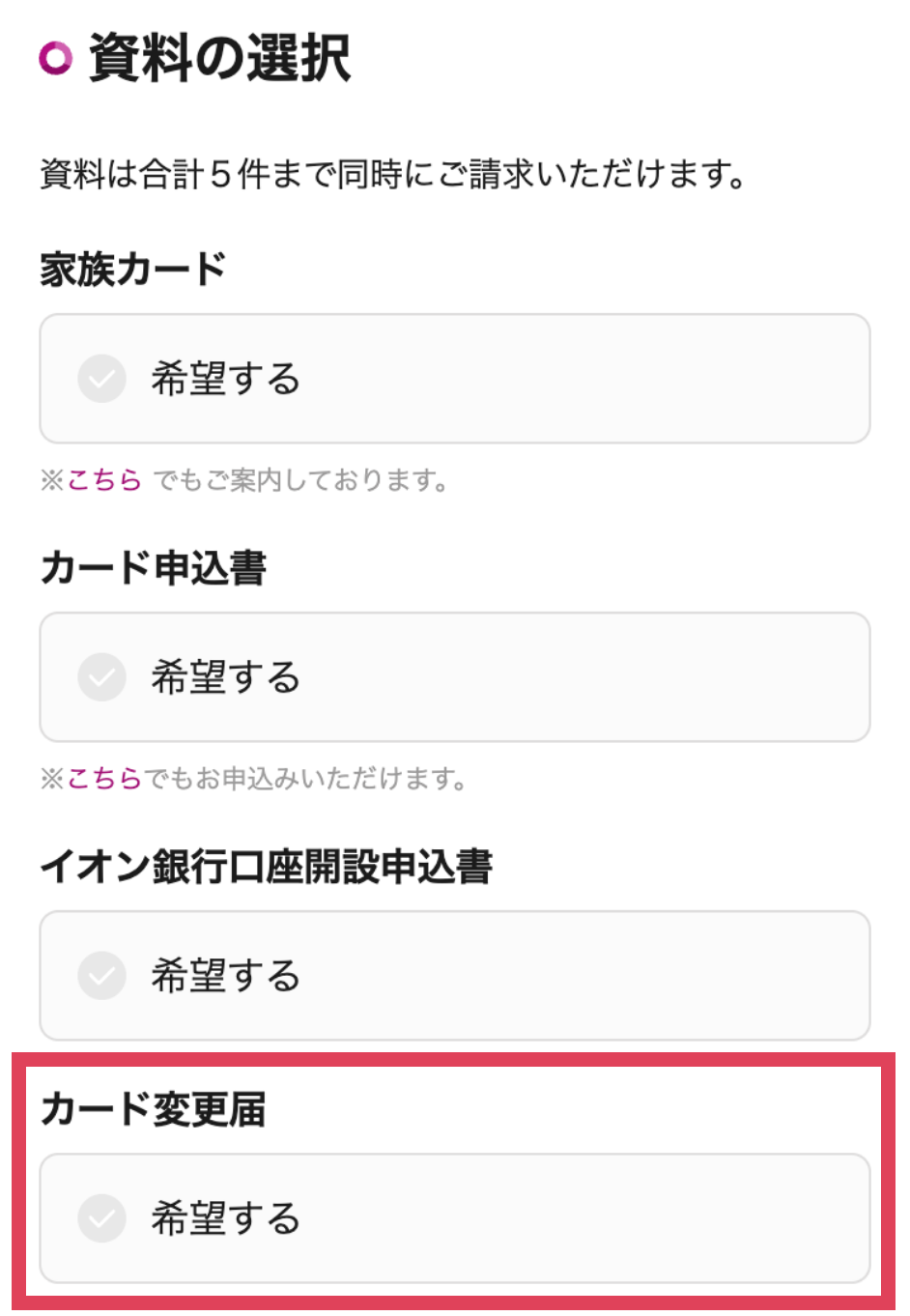 ※イオンカードセレクトをお持ちでイオンカードセレクト以外のカードでお手続きされた場合は、別途ご案内をお届けいたします。