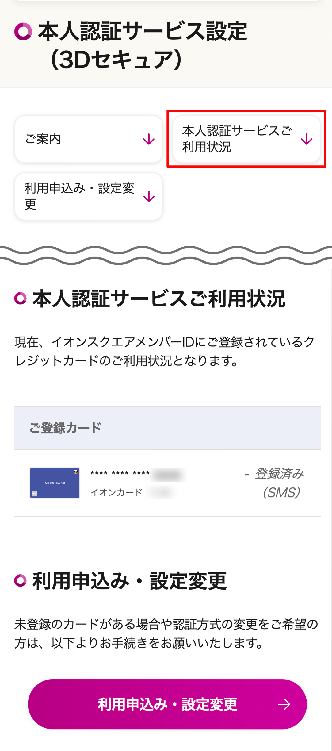 こちらのページにて対象のカードの登録状況をご確認いただけます。